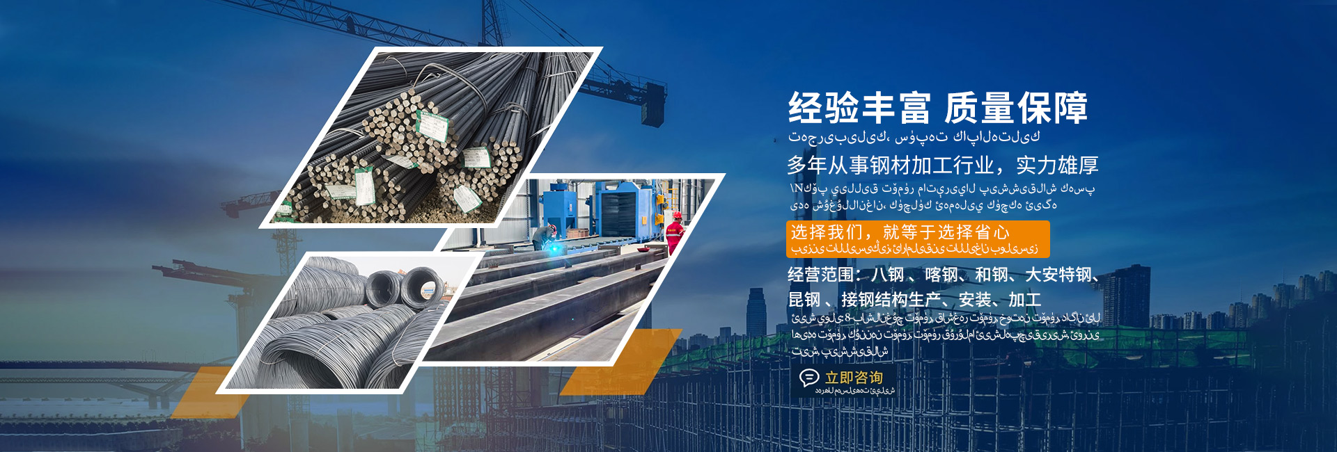 主营:八钢 、喀钢、和钢、大安特钢、 昆钢 、接钢结构生产、安装、加工